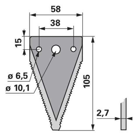 Gyári cikkszámok: 344.024, 344.0241, 5803.004.11 Kivitel: fogazott Szélesség (b): 58 mm Gerenda fajtája: 10= egyéb komplett kasza, különféle kivitelek Magasság (h): 105 mm Furattáv (la): 38 mm Furattáv 2 (la2): 15 mm Lyukátmérő: 6,5 mm Lyukátmérő 2: 10,1