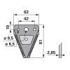 Gyári cikkszámok: 344.0880, 344.098, 344.0981 Kivitel: felső fogazott Szélesség (b): 62 mm Magasság (h): 81 mm Furattáv (la): 42 mm Furattáv 2 (la2): 10 mm Lyukátmérő: 6,5 mm Lyukátmérő 2: 9,5 mm Süllyesztett szegecsfurat: nem Vastagság (s): 2,65 mm Gy