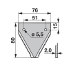 Gyári cikkszámok: 344.112, 344.1121, 344.3020 Kivitel: fogazott Szélesség (b): 76 mm Magasság (h): 80 mm Furattáv (la): 51 mm Furattáv 2 (la2): 15 mm Lyukátmérő: 5,5 mm Süllyesztett szegecsfurat: nem Vastagság (s): 2 mm Gyári cikkszámok: 344.112, 344.1