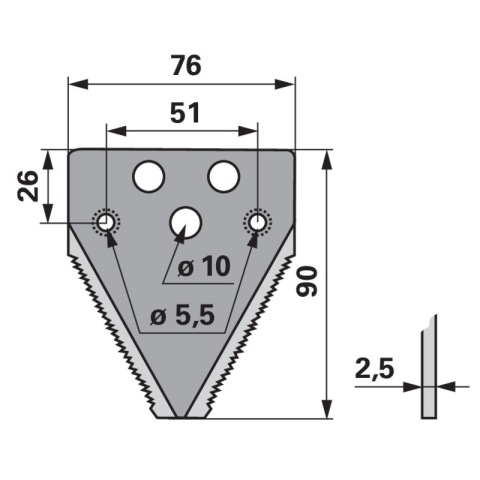 Kivitel: fogazott Szélesség (b): 76 mm Magasság (h): 90 mm Furattáv (la): 51 mm Furattáv 2 (la2): 26 mm Lyukátmérő: 5,5 mm Lyukátmérő 2: 10 mm Süllyesztett szegecsfurat: alul Vastagság (s): 2,5 mm Kivitel: fogazott Szélesség (b): 76 mm Magasság (h): 90