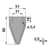 Kivitel: fogazott Szélesség (b): 51 mm Magasság (h): 80 mm Furattáv (la): 31 mm Furattáv 2 (la2): 16 mm Lyukátmérő: 5,5 mm Süllyesztett szegecsfurat: nem Vastagság (s): 2,5 mm Kivitel: fogazott Szélesség (b): 51 mm Magasság (h): 80 mm Furattáv (la): 31