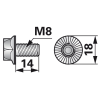 Külső átmérő (D): 18 mm Menet (d): M8 Menetméret (b): 14 mm Felület: horganyzott Külső átmérő (D): 18 mm Menet (d): M8 Menetméret (b): 14 mm Felület: horganyzott