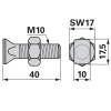 Szélesség (B): 10 mm Külső átmérő (D): 17,5 mm Menet (d): M10 Hossz (L): 40 mm Kulcstávolság (SW): 17 mm Szélesség (B): 10 mm Külső átmérő (D): 17,5 mm Menet (d): M10 Hossz (L): 40 mm Kulcstávolság (SW): 17 mm