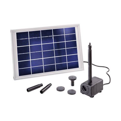 Napelemes készlet, Palermo-S Max. szállítási magasság 0,8 m Max. szállítási teljesítmény 300 l/óra Szárazon futás elleni védelemmel Használja a Nap erejét, hogy a napelemes készlettel szökőkutat vagy vízoszlopot állítson elő. Ha igényli, a csőcsatlakoz