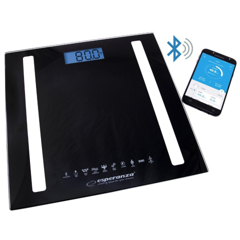 Esperanza B.FIT 8 in1Esperanza 8in1 Bluetooth funkcióval rendelkező B.FIT diagnosztikai mérleg a testtömeg, a testzsír, a víz, az izom, a csonttömeg, a szervzsír, a BMI és a szükséges kalóriatartalom elemzésére szolgál. Teljes képet kap az életstílusáról. A részletes értelmezéssel és javaslatokkal megtudhatod, hogy mit és hogyan lehet megváltoztatni, hogy jobb értékeket érj el. Ha edzés vagy diétázás folyamatában van, lehetővé teszi, hogy tökéletesen ellen