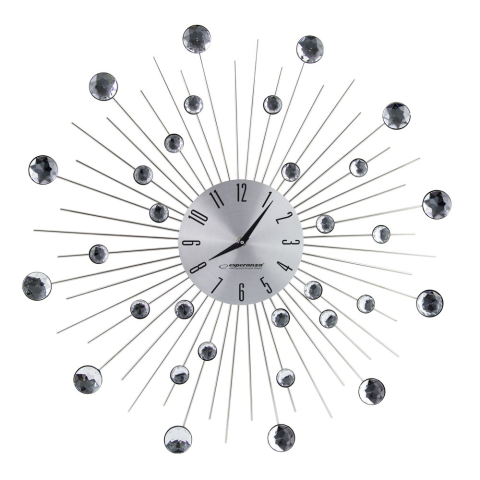 A Esperanza BOSTON falióra nem csak arra szolgál, hogy időt mutasson, hanem minden belső tér szép díszítésére is. A szaporító sugarakon különféle formájú kristályok vannak, így a falat "gyémántokkal" díszítik. Elegáns és stílusos kialakításának köszönhetően tökéletesen illő lakások, irodák, üzletek és éttermekbe. Elképesztő 3D-effektust nyújt! És az óra nagyon pontos.