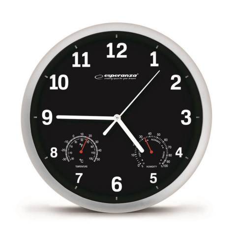 Ez az óra nem csak a pontos időt mutatja, hanem a szobahőmérsékletet és a páratartalmat is. Rendkívül elegáns és stílusos kialakításának köszönhetően kiválóan alkalmas lakások, irodák, üzletek vagy éttermek díszítésére. Átmér