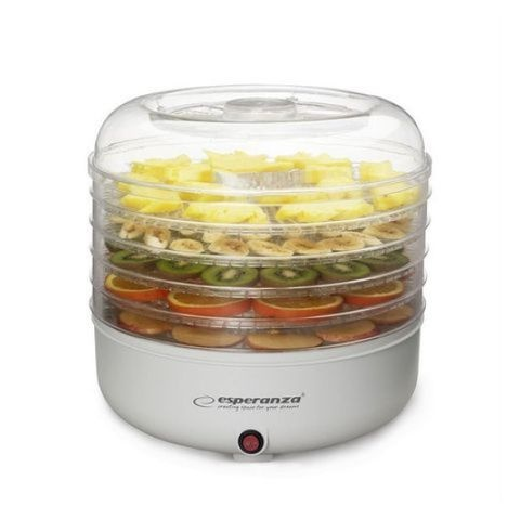 Esperanza EKD001 CHAMPIGNONS 125W fehér aszalógépEz a készülék lehetővé teszi számunkra, hogy egész évben gyümölcsöt, zöldséget vagy gomba ízét tartsuk fenn tartósítószerek nélkül és más mesterséges adalékanyagok nélkül. Ez a készülék hosszabb ideig tartja kedvenc termékeinek ízét és illatát. Elengedhetetlen minden modern és egészséges konyhában. Gyorsan, pontosan és egyenletesen szárítja a termékeket. Az aszaló teljesen biztonságos.
