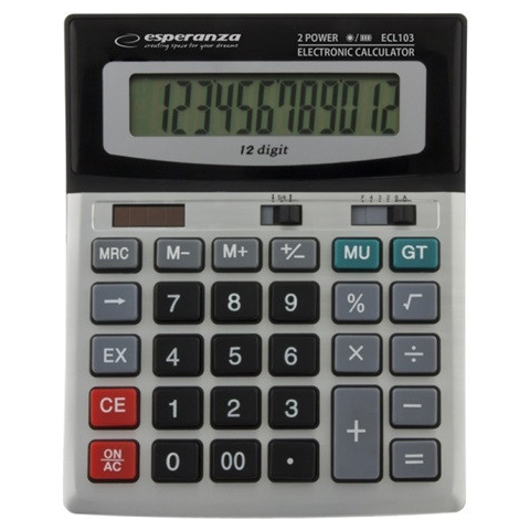 Elektronikus asztali számológép nagy, 12 számjegyu kijelzovel. Minden alapveto matematikai funkcióval rendelkezik (összeadás, kivonás, szorzás, osztás, négyzetgyök, százalékos számítás), a visszavonás funkcióval beírt számok és az eredmények tárolásának lehetosége. A ferde kijelzo, a nagy kijelzoszámok és a nagy gombok megkönnyítik a számológéppel való munkát. Ideális mindenn