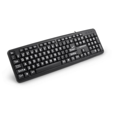 Esperanza EK129 FLORIDA USB fekete vezetékes billentyűzetKényelmes, kellemes érintésű, kiváló minőségű vezetékes USB-billentyűzet. Az elegáns kialakítás tökéletesen illeszkedik az asztalon található egyéb tartozékokhoz. Az ergonómikus forma és a kulcsok nagyon jó rugalmassága megakadályozza a kézi fáradtságot gépelés közben. A legújabb UV-technológiával nyomtatták ki a betűket és a szimbólumokat, és speciális védőréteggel vannak ellátva, amely nag