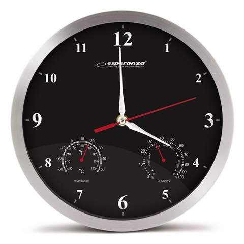 Ez az óra nem csak pontos időt mutatja, hanem a szobahőmérsékletet és páratartalmat. A rendkívül elegáns és stílusos kialakításnak köszönhetően kiválóan illeszkedik a lakások, irodákat, üzleteket és éttermeket berendezéseihez. A nagyméretű tárcsa lehető