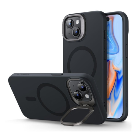 1 kép ESR CLOUD szilikon telefonvédő (közepesen ütésálló, légpárnás sarok, Magsafe kompatibilis, kitámasztó) FEKETE
