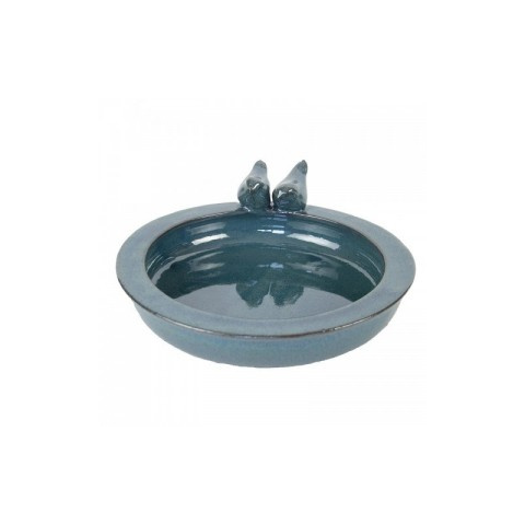 Kerámia madáretető- és itató madárdíszítéssel, kék színben. Ha szeretnél kedvükben járni a madaraknak, remek választás ez a kerti kiegészítő! A kerámiából készült tál egyszerre funkcionálhat madáretetőként, madáritatóként