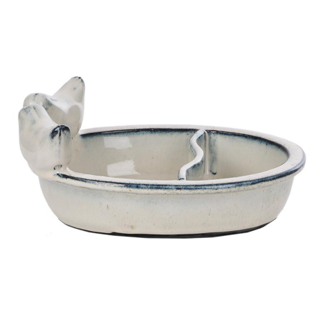 1 kép Esschert Design Kerámia madáretető és itató tál, törtfehér