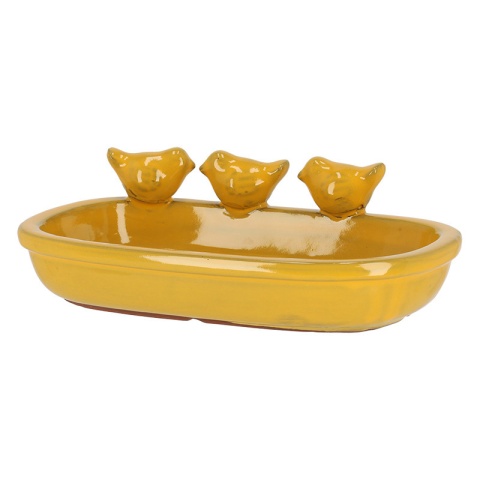 Kerámia madáritató és etető tál sárga színben. Nincs is annál jobb, mint amikor az ember reggel kipillant az ablakon, és a szeme előtt cinkék, verebek, pintyek, vörösbegyek repkednek. Elég az ablakba helyezni ezt a dekoratív madáritatót