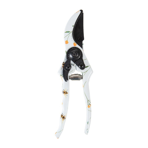 Méhecske mintás metszőolló kisebb kerti munkákhoz. Ergonomikus kialakítású, amely tökéletesen alkalmas rügyek és virágok metszésére. A rajta lévő kapocs segítségével összezárható.