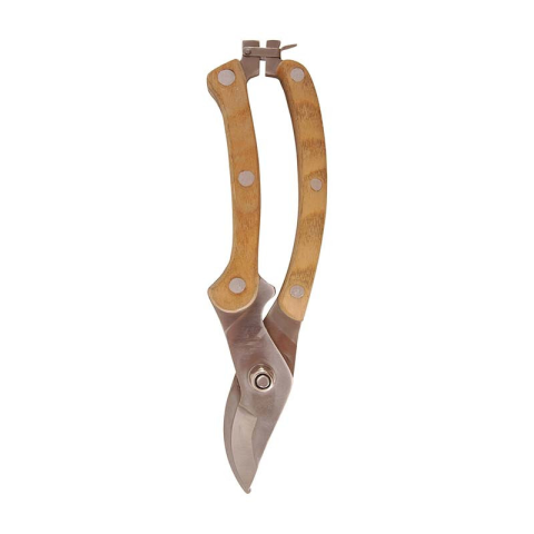 Rozsdamentes acél metszőolló, kőrisfa nyéllel. Alapvető kerti eszköz, amely speciális kialakításának köszönhetően alkalmas virágok vágására, ágak metszésére. Könnyen zárt állapotban tartható a végén található kapocs segítségével, így balesetmentesen elhel