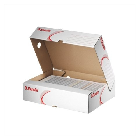 - a kiváló minőségű Esselte Standard dobozok már több, mint 25 éve állnak a felhasználók szolgálatában - az Esselte dobozokba és konténerekbe évente több millió dokumentumot archiválnak le a közintézmények és magánvállalatok egyaránt - tökéletes megoldás iratrendezőkből kiemelt dokumentumok archiválásához - a felfele nyíló tetőnek köszönhetően a dokumentumok könnyen behelyezhetők ill. kivehetők - 75/80 mm gerincű iratrendezők / gyűrűskönyvek ta