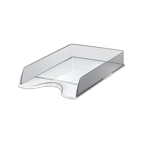 Irattartó tálca - egymásra rakható, műanyag, A4 formátum, 6 cm tárolókapacitás, méretei 6,1 × 25,4 × 35 cm (ma × szé × mé), szürke és átlátszó kivitel, tömege 0,21 kg Az ESSELTE FUSION tárolóegység A4-es méretig biztosítja az iratok, dokumentumok és egyéb papírok áttekinthető tárolását. Kiváló minőségű műanyagból készült, és egyedi dombornyomott felülettel van kieg