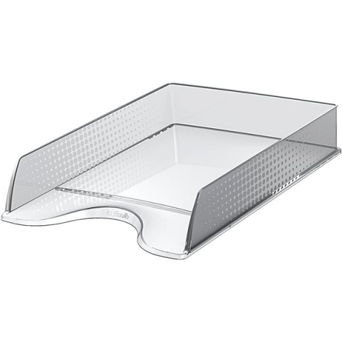 Irattartó tálca - egymásra rakható, műanyag, A4 formátum, 6 cm tárolókapacitás, méretei 6,1 × 25,4 × 35 cm (ma × szé × mé), szürke és átlátszó kivitel, tömege 0,21 kg Az ESSELTE FUSION tárolóegység A4-es méretig biztosítja az iratok, dokumentumok és egyéb papírok áttekinthető tárolását. Kiváló minőségű műanyagból készült, és egyedi dombornyomott felülettel van kieg