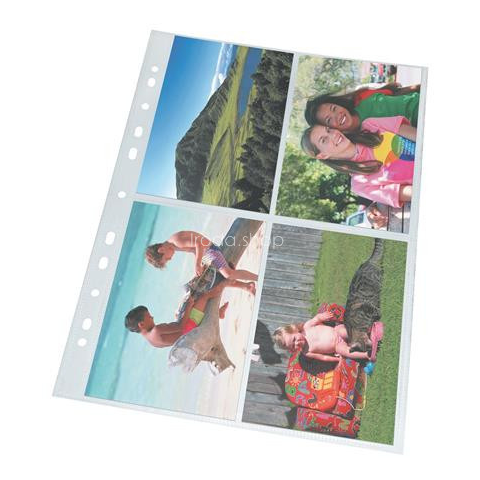 Genotherm, lefűzhető, A4, 80 mikron, víztiszta felület, fényképtartó, ESSELTE - 10x15 cm méretű fényképek tárolására és rendszerezésére alkalmas - 11 lefűzőlyuk - víztiszta felület - nyitott oldal: felül - kapacitás: 4 fénykép / oldal és 8 fénykép /