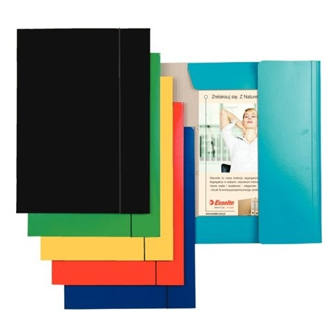 Gumis mappa, 15 mm, karton, A4, Esselte Economy, fekete - kívül vidám színekre lakkozott, belül szürke színű karton gumis mappa - az iratok védelmének egyik legjobb módszere - lefűzés nélküli irattárolást tesz lehetővé - A4-es dokumentumok tárolására -