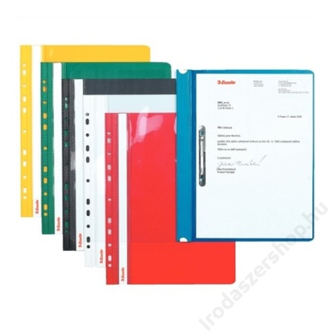 - - az iratok áttekinthetőbb és egyszerűbb kezelését szolgálja - a lefűzött iratokat a gyorslefűzővel együtt lehet iratrendezőben vagy gyűrűskönyvben tárolni - színtelen előlap, színes hátlap - cserélhető címke - lefűzős szerkezet: fém - méret: A4
