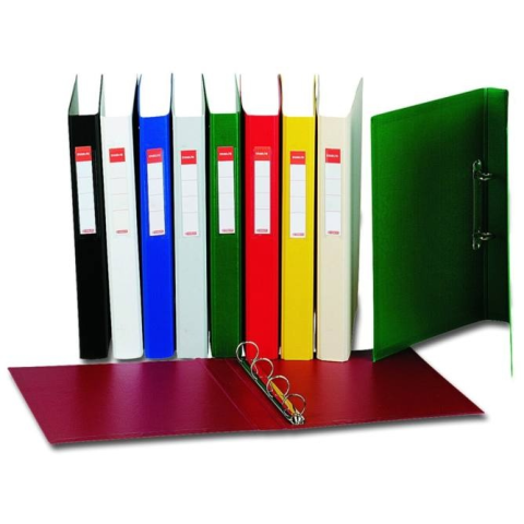 Gyűrűskönyv a lyukasztott lapok helytakarékos tárolásához.