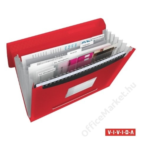 Harmonikamappa, A4, PP, 6 rekeszes, ESSELTE Vivida, piros (E624016) - kiváló minőségű, PP, harmonika irattartó élénk színekben és dekoratív VIVIDA formatervezésben - 6 kihajtható feliratozható rekesz jelölőcímkével, áttetsző 0,67 mm vastag PP alapanyag