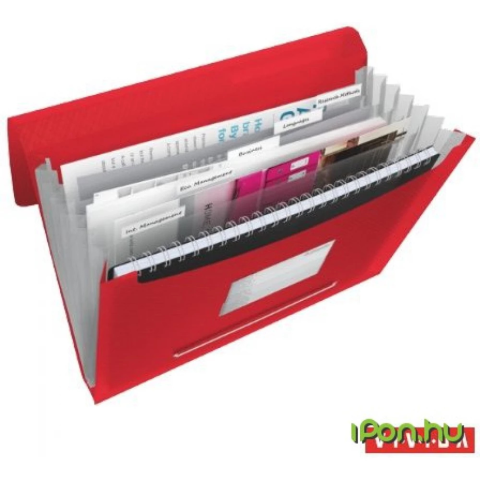 1 kép ESSELTE Harmonika mappa, A4, PP, 6 rekeszes, "Vivida", piros