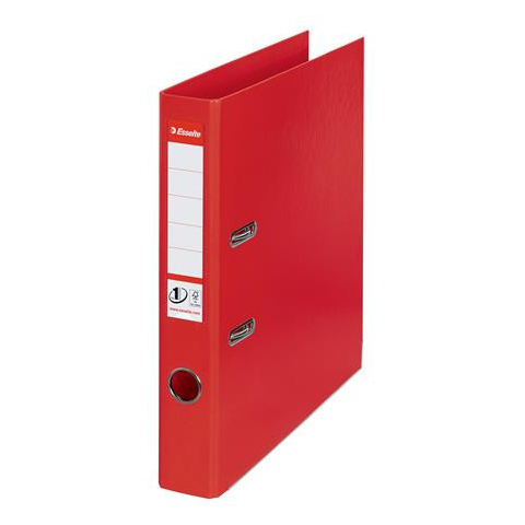 Iratrendező, 50 mm, A4, PP, élvédő sínnel, ESSELTE Standard, piros - kiváló minőségű, tartós iratrendező professzionális irodai használatra - szabadalmaztatott No.1 szerkezet kiemelkedő záróerővel a mindig precíz illeszkedésért, garantált a megbízható