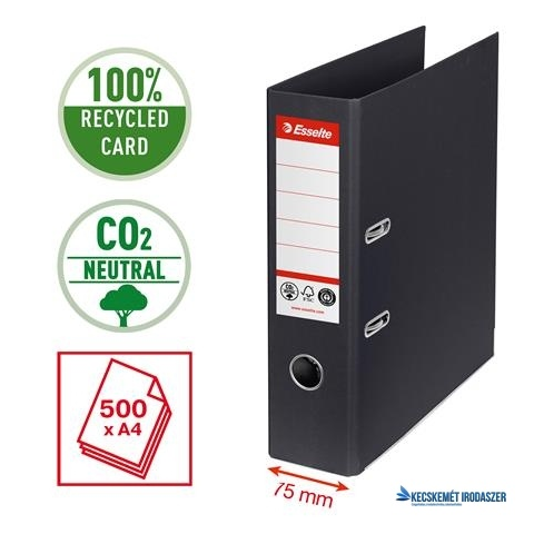 Iratrendező, 75 mm, A4, Co2-semleges, élvédő sínnel, ESSELTE "No.1", fekete - E627569 - Iratrendezők, karton külső, karton belső, 70-80 mm gerinc - Kiváló minőségű, környezetbarát iratrendező 100%-ban újrahasznosított és 100%-ban újrahasznosítható kartonb