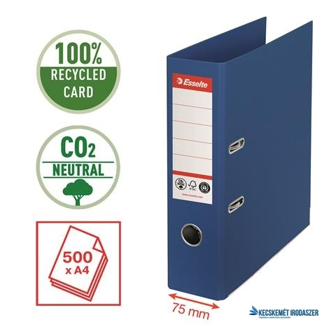 1 kép ESSELTE Iratrendező, 75 mm, A4, Co2-semleges, élvédő sínnel, ESSELTE "No.1", kék