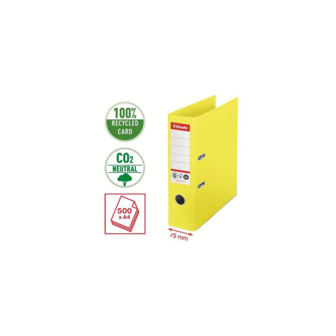 1 kép ESSELTE Iratrendező, 75 mm, A4, Co2-semleges, élvédő sínnel, ESSELTE "No.1", sárga