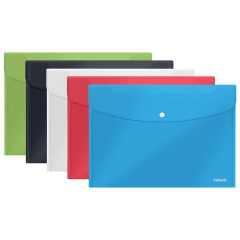 A Irattartó tasak, A5, patentos, ESSELTE Vivida, vegyes színek (E2115673) Hangolja össze munkaterületét az Esselte VIVIDA termékcsaláddal. -praktikus irattartó mappa a dokumentumok védelméhez útközben -könnyű anyag a mobil felhasználók kényelméért -gyors