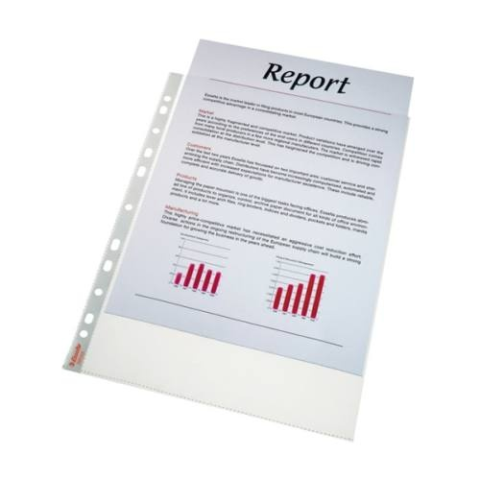 Minőségi tasak mindennapos használatra. Az univerzális lyukasztású lefűzőcsíknak köszönhetően kényelmes tárolási megoldást biztosít dokumentumok számára bármilyen iratrendezőben, gyűrűskönyvben. Víztiszta, 55 mikron vastag, újrahasznosított PP alapanyag. Felül nyitott, melynek köszönhetően a dokumentumok könnyen kiemelhetők a tasakból akár magában az iratrendezőben is. A 11 lefűzőlyuknak köszönhetően bármilyen iratrendezőben, gyűrűskönyvben használ