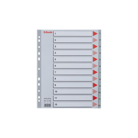 1-12 regiszter . PP alapanyag. A4 Maxi méret. Szürke. Szürke színű regiszter. Nagyméretű téglalapok az előlapon a tartalom feltüntetésére.