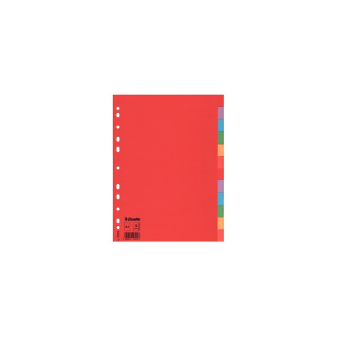 REGISZTER A4, 12 RÉSZES KARTON ESSELTE ECONOMY SZÍNES Tartós elválasztólap élénk színkombinációkban. Újrahasznosított karton alapanyag. 12 színes fül a könnyű rendszerezéshez Hagyományos, 11-lyukú lefűzőrész A4 formátum Erős, 160 g-os karton alapany