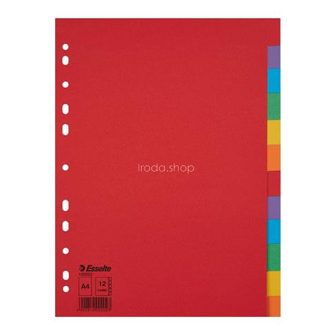 Regiszter, karton, A4, 12 részes, ESSELTE Economy, színes - tartós elválasztólap élénk színkombinációkban - 12 színes fül a könnyű rendszerezéshez - hagyományos, 11-lyukú lefűzőrész - Blue Angel minősített, újrahasznosított karton alapanyag - erős, 1
