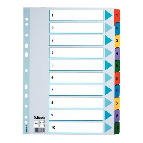 1 kép ESSELTE Regiszter, karton, A4, 1-10, ESSELTE Mylar