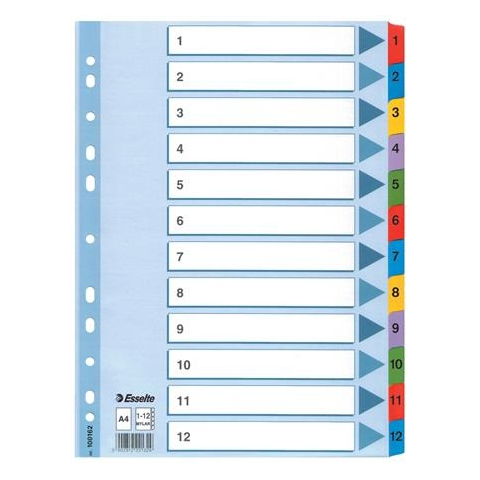 1 kép ESSELTE Regiszter, karton, A4, 1-12, ESSELTE Mylar