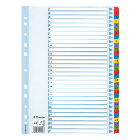Teljes ESSELTE Regiszter, karton, A4, 1-31, ESSELTE "Mylar" termékleírás