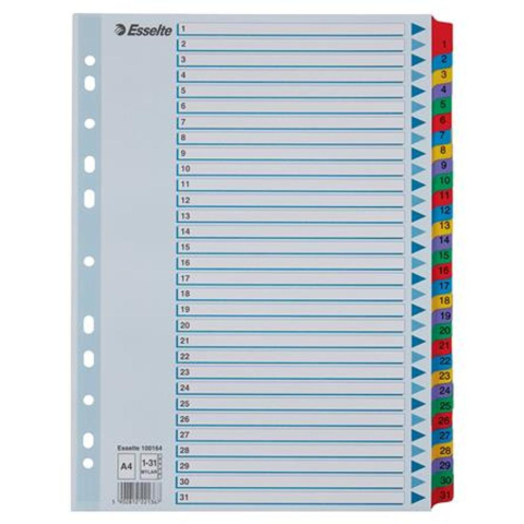 ESSELTE Regiszter, karton, A4, 1-31, ESSELTE "Mylar" regiszter és tartozékai árgrafikon