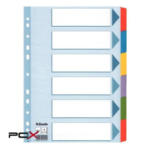 1 kép    ESSELTE Regiszter, laminált karton, A4, 6 részes, ESSELTE "Mylar", színes