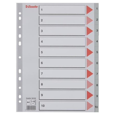 1 kép    ESSELTE Regiszter, műanyag, A4, 1-10, ESSELTE,szürke