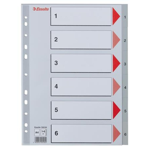 1 kép    ESSELTE Regiszter, műanyag, A4, 1-6, ESSELTE, szürke