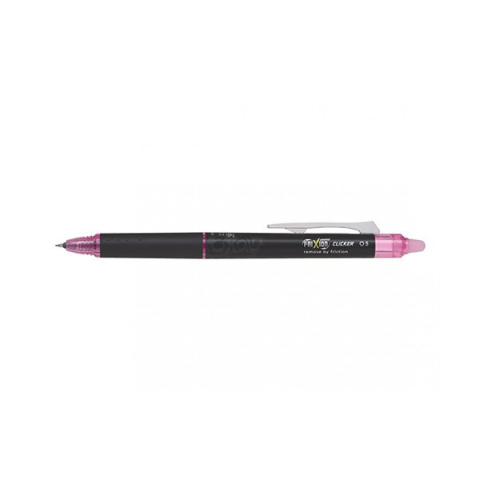 Rollertoll PILOT Frixion Clicker Point tűhegyű nyomógombos radírozható 0,25 mm rózsaszín Innovatív és divatos kialakítású rollertoll egyedülállő, hőérzékeny tintával. A leírt szöveg a toll végén található gumival való dörzsölés hatására eltűnik, majd