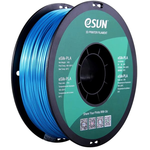 Filament – PLA anyagból Silk, 1,75 mm húrátmérő, 1 kg tömegű, 220 °C max. nyomtatási hőmérséklet, max. nyomtatási platform hőmérséklet 50 °C, ajánlott nyomtatási sebesség 40 mm/s - 100 mm/s A keresett ESUN PLA filament PLA-ból készült és ideális kezdőknek. Kék színben kapható. Selymes felületet és finom csillogást kölcsönöz. A hútátmérő 1,75 mm. Az optimális eredmények 220 °C max. fúvóka