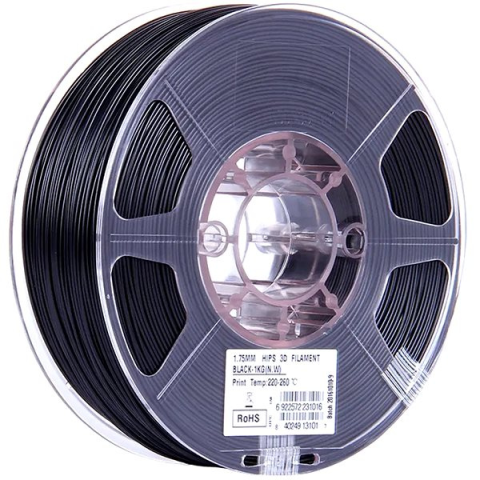 Filament – rPETG, 1,75 mm húrátmérő 0,03 mm tűréssel, 1 kg tömegű, 270 °C max. nyomtatási hőmérséklet, max. nyomtatási platform hőmérséklet 115 °C, ajánlott nyomtatási sebesség 40 mm/s - 100 mm/s A minőségi ESUN HIPS 3D nyomtató filament HIPS anyagának köszönhetően nagy objektumok nyomtatására vagy ABS és PETG nyomtatáshoz kiegészítő anyagként használható. Limonénnal vagy acetonnal oldható. Fe