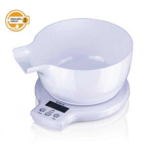 Digitális konyhai mérleg Mérési tartomány: 5 kg Pontosság: 1 g Tál térfogata: 2,2 liter Kézi / automatikus kikapcsolás Egységek: g / oz Tára és nulla funkció Túlterhelés kijelzése Alacsony töltöttség jelző 3V CR2032 elemmel működik12 hónap garancia
